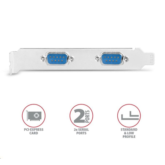 PCI-Express karta AXAGON PCEA-S2N rozšíří stolní počítač o dva sériové RS-232 porty s DB-9 konektory.