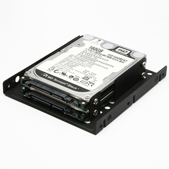 Kovový rámeček AXAGON RHD-225 umožňuje montáž dvou 2.5" pevných nebo SSD disků do jedné 3.5" pozice PC skříně.