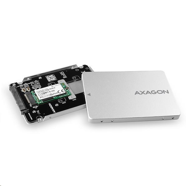 AXAGON RSS-M2SD, SATA - M.2 SATA SSD, interní 2.5" ALU box, stříbrný