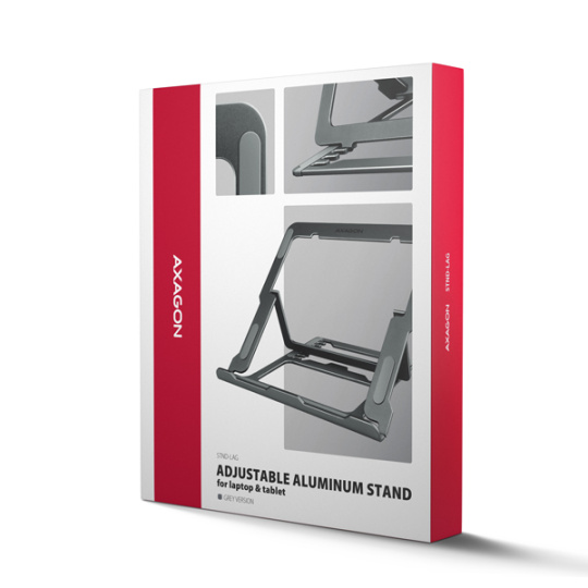 AXAGON STND-LAG, hliníkový stojan pro notebooky 10"-17.3", nastavitelná výška, šedý
