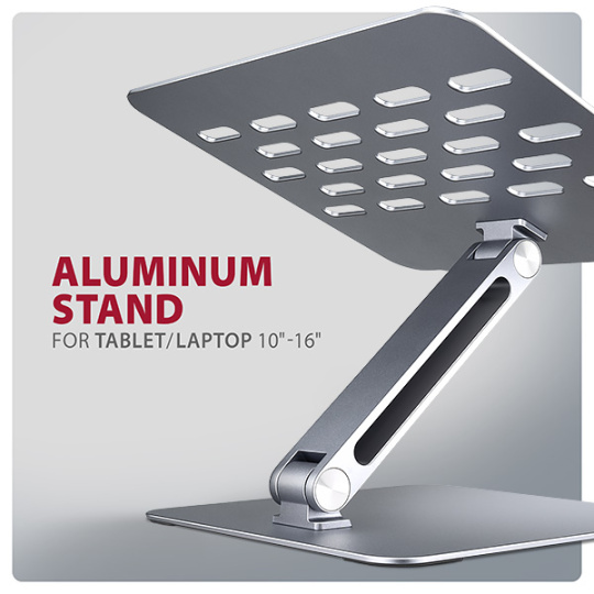 Podstavec je vyroben z robustních hliníkových odlitků garantujících dlouhou životnost a spolehlivost. Díky protiskluzové úpravě se nemusíte obávat nežádoucích pohybů - vaše zařízení zůstane pevně na svém místě, a to bez poškození povrchu notebooku či podložky. Tyto pečlivě navržené vlastnosti zaručují perfektní stabilitu pro váš notebook, tablet nebo dokonce oblíbenou knihu, což vám poskytne klid a pohodlí při každodenním používání.