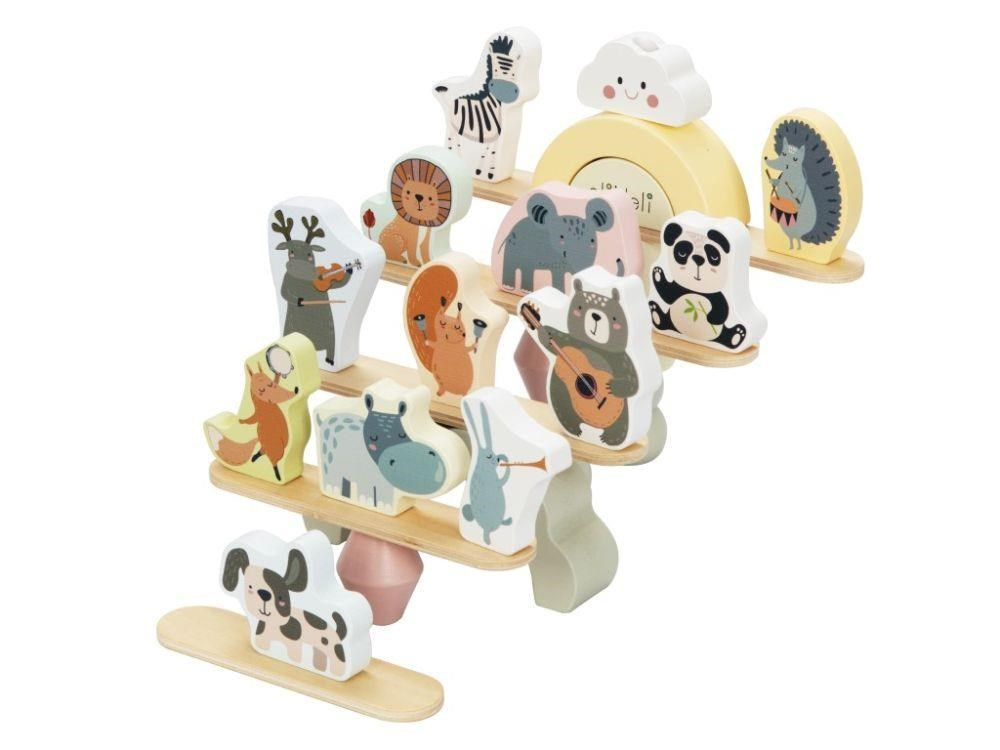 Dřevěná balanční hra s veselými zvířátky, destičkami, kostičkami a s duhou, je multifunkční hračkou, se kterou si užijí spoustu zábavy děti i celá rodina. Při této balanční hře může balancovat vše co najdete v balení. Jak vysokou pyramidu a co všechno k její výstavbě děti použijí je čistě na jejich fantazii. Při balanční hře děti zdokonalují jemnou motoriku, koordinaci, logické myšlení, prostorovou představivost, učí se soustředit se a trpělivosti..