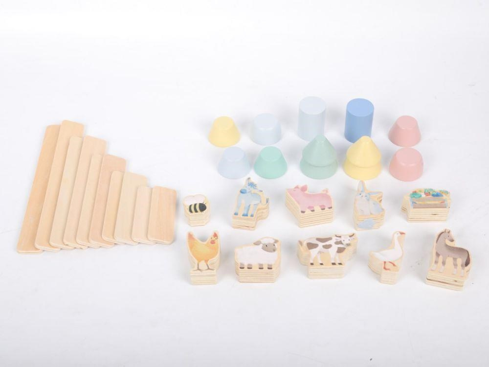 Balanční hra se zvířátky z farmy, je multifunkční hračkou, se kterou si užijí spoustu zábavy děti i celá rodina. Při hře může balancovat vše co najdete v balení - zvířátka, destičky, dřevěné tvary. Jak vysokou pyramidu a co všechno k její výstavbě děti použijí je čistě na dětské fantazii. Při balanční hře děti zdokonalují jemnou motoriku, koordinaci, logické myšlení, prostorovou představivost, učí se soustředit se a trpělivosti, poznávat zvířátka ze svého okolí..