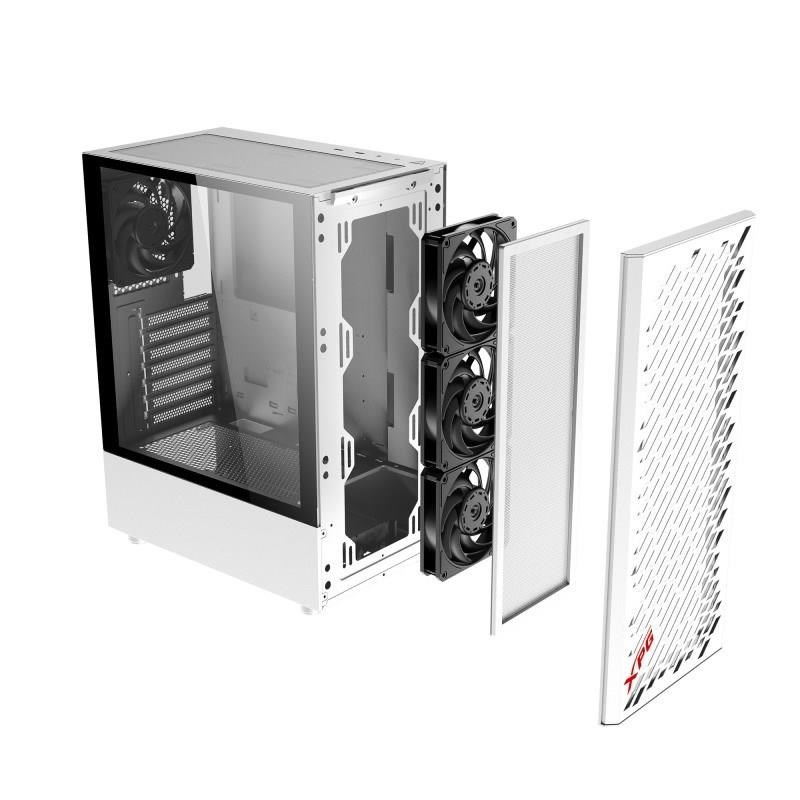 XPG VALOR AIR je kompaktní mid-tower ATX šasi s designem předního panelu Streamline-Carving a bočním panelem z 3mm tvrzeného skla. XPG VALOR AIR je k dispozici v černé a bílé barvě a je dodáván se 4 předinstalovanými 120mm ventilátory po vybalení. Vnitřní uspořádání je mechanicky navrženo tak, aby byla zajištěna kompatibilita s většinou běžných součástí a má maximální flexibilitu pro podporu. XPG VALOR AIR je vybaven grafickými kartami délky až 305 mm a vzduchovými chladiči CPU s výškou až 166 mm a nabízí více než většina šasi kompaktních rozměrů.