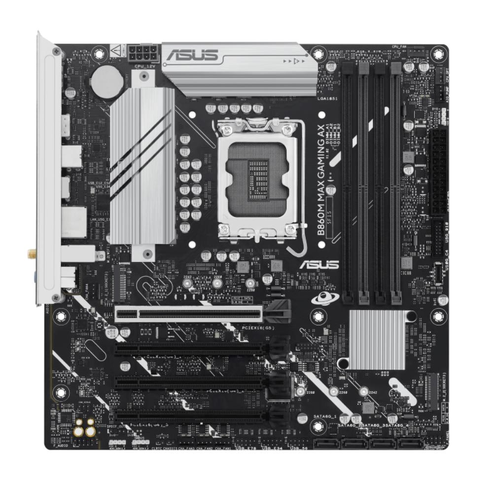ASUS B860 series motherboards are expertly engineered to unleash the full potential of the latest Intel® Core™ Ultra Processors (Series 2). Boasting a robust power design, comprehensive cooling solutions and intelligent tuning options, the B860M MAX GAMING AX motherboard provides users and PC DIY builders with a range of performance optimizations via intuitive software and firmware features. It’s designed to be Advanced AI PC-ready, offering the power and connectivity needed for demanding AI applications.