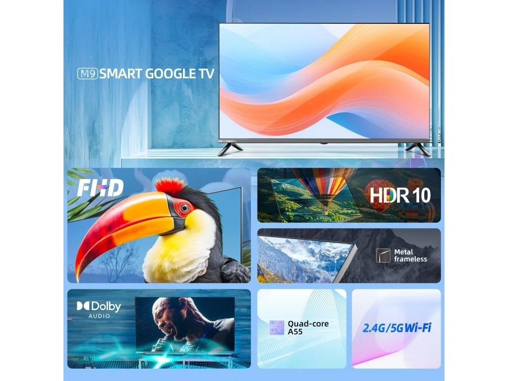 CHiQ 40“ L40M9E, metalická bezrámečková Smart Google TV s HDR10, HLG, obrazovkou s Full HD s rozlišením 1920 x 1080 pixelů, Dolby Audio a vylepšeným zvukem dbx-tv.