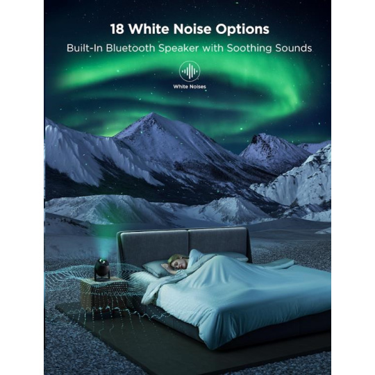 Govee Star Light Projector nabízí 18 přednastavených vzorů bílého šumu, které vám pomohou navodit klidnou atmosféru a podpořit relaxaci nebo lepší spánek. Kromě toho může projektor fungovat i jako Bluetooth reproduktor, což vám umožní přehrávat vlastní hudbu nebo audioknihy přímo z vašeho zařízení. Ať už preferujete relaxaci při bílém šumu, nebo chcete, tento projektor vám poskytne všestranné zvukové možnosti pro každou situaci.