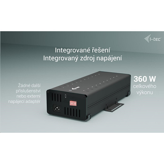 - HUB obsahuje integrovaný napájecí adaptér (360 W)