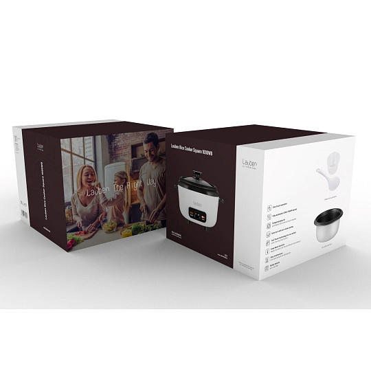Oproti ostatním rýžovarům je Lauben Rice Cooker Square 1000WB příkladem skvělé kombinace funkčního a stylového designu. Nejen, že dobře vypadá, ale díky svému hranatému tvaru je zároveň kompaktní a snadno se skladuje. Poklice rýžovaru je z tvrzeného skla, tudíž máte lepší kontrolu nad stavem připravovaného jídla. Zároveň je opatřena otvorem pro únik přebytečné páry. Samozřejmostí jsou protiskluzové nožičky, díky kterým rýžovar vždy zůstane na svém místě. Povrch vnitřní nádoby rýžovaru je nepřilnavý, takže rýži můžete připravovat bez tuku, a přesto se nikdy nepřipálí. Technologie Cool touch zase zajistí, že se o něj nikdy nespálíte vy.