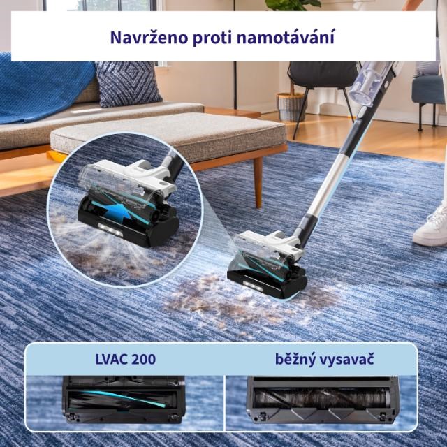 Tyčový vysavač Levoit je navržený, aby maximálně usnadnil úklid vašeho domova, ať už ho sdílíte se čtyřnohým, nebo dvounohým miláčkem. Vysavač je vybaven rotačním kartáčem s kombinací gumových a textilních lamel, který byl navržen tak, aby na něm nedocházelo ke hromadění namotaných vlasů nebo chlupů. Zároveň je ale kartáč efektivní a zachytává maximální množství nečistot. Vysavač pracuje s 22,2V vyjímatelným akumulátorem s kapacitou 2200 mAh a indikací nabití. Motor je s výkonem 180 W nezvykle tichý, při běžném provozu vydává 74 dB, v Turbo režimu pak 81 dB. Vysavač s plně nabitou baterií dokáže pracovat až 50 minut, což umožní úklid celého obydlí na jedno nabití. Úklid s LVAC 200 je radost díky jeho velmi nízké hmotnosti 1,45 kg. Díky tomu je snadné s vysavačem odstranit i pavučiny ze stropu, prach ze žaluzií nebo nečistoty pod nábytkem. V balení naleznete dlouhou a krátkou násadu, rotační kartáč, 2v1 kartáč na čalounění nebo zvířecí srst a 2v1 štěrbinový nástavec s kartáčem. Tím máte perfektní sadu nástrojů pro kompletní úklid. Levoit LVAC si hravě poradí se všemi povrchy, ať už jsou to koberce, tvrdé podlahy nebo čalounění. Kartáčový nástavec je navíc vybavený LED světlem, takže umožní práci v tmavých zákoutích, a navíc osvětluje přítomné nečistoty. Vysavač v sobě skrývá 5násobný filtrační systém, který odstraňuje částice od velikosti 0,3 mikrometrů. Nečistoty se shromažďují v 0,75L nádobě s mechanizmem pro snadné a hygienické vyprazdňování. Filtry i kartáč jsou jednoduše vyjímatelné a omyvatelné.