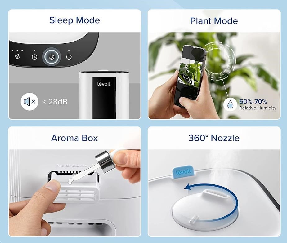 Stejně jako lidé, i rostliny potřebují správnou vlhkost, aby se jim dobře dařilo. Se zvlhčovačem Levoit OasisMist Smart budou vaše květiny v dobré péči a skvělé kondici i během suchých období. Díky automatickému programu a možnosti nastavení časových harmonogramů poskytnete vašim rostlinám potřebnou péči.
