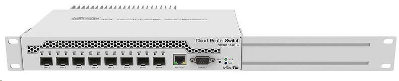 CCR309-1G-8S+ je velmi kompaktní, avšak výkonný switch. Je vybaven 8 SFP+ sloty, které podporují linkovou rychlost 10Gbps. Celková přepínací kapacita 162 Gbps a celková non-blocking propustnost 81 Gbps.