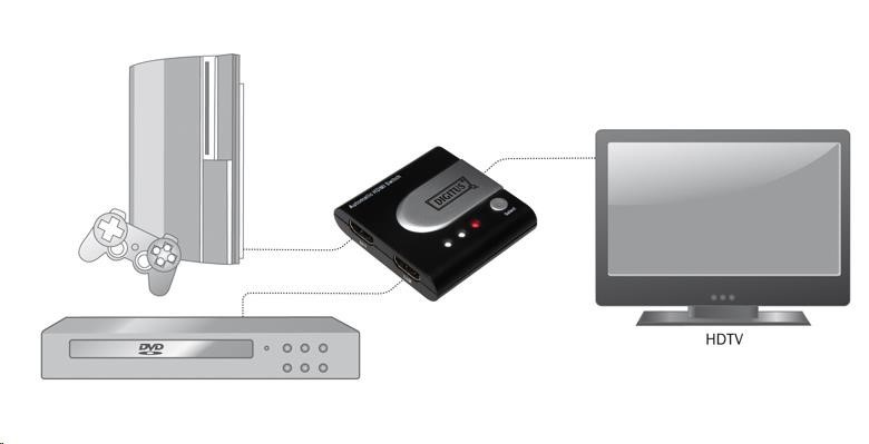 HDMI Switch 2 ->1 automatický 2 HDMI zařízení sdílejí 1 HDMI zařízení (obrazovku). Výběr zařízení je buď automaticky nebo tlačítkem. Podpora 20m HDMI kabelu na vstupu, až 25m HDMI kabelu na výstupu HDMI Switche. Podpora 3D HDMI rolišení 480i, 480p, 720i, 720p,1080i a 1080p Podpora modů VGA,SVGA,XGA,UXGA mode HDMI 1.3b 8bit,10bit,a 12bit barevná hloubka na kanál Výběr vstupu tlačítkem / automaticky. Plug-and-play, není třeba software. - HDCP kompatibilní V balení: 1x HDMI switch 1x 0.5m propojovací HDMI kabel.