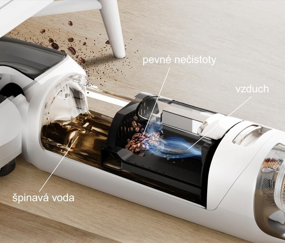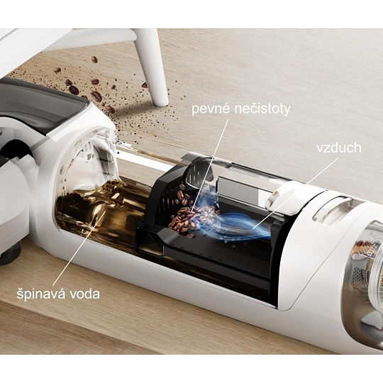 • Špinavá voda (0,7 l) je ukládána odděleně do nádrže umístěné nad kartáčovou hlavicí pro maximální hygienu