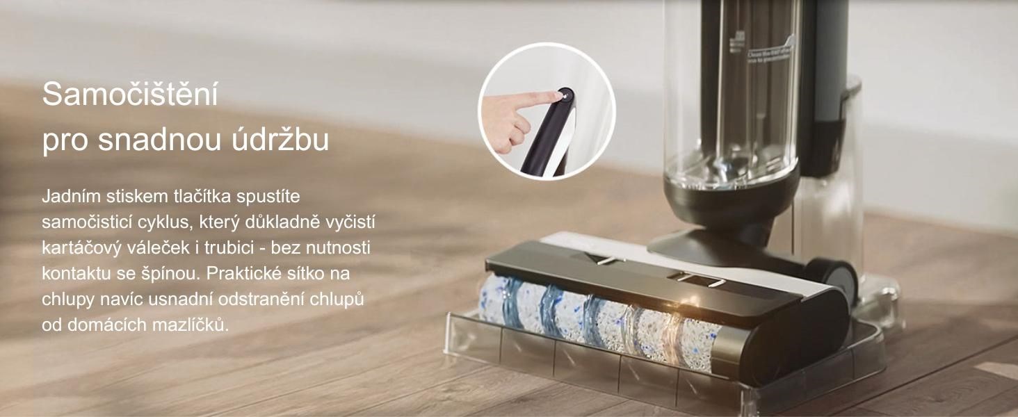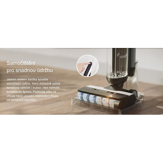 Inovativní systém MHCBS (Multi-stage Hybrid Cleaning Brush System) zajišťuje, že kartáčový válec zůstává během celého úklidu vždy čistý – bez šíření nečistot zpět na podlahu.