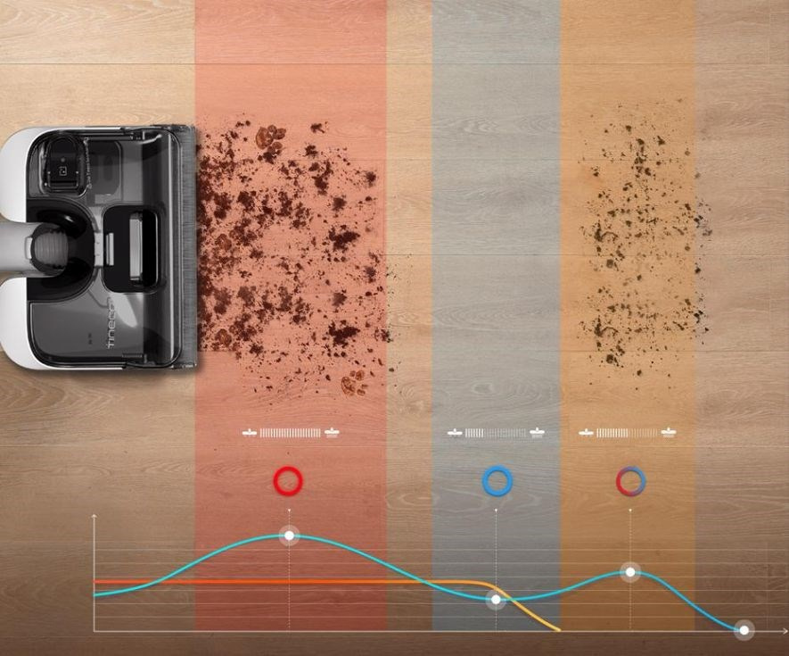 Inteligentní senzor iLoop automaticky detekuje úroveň znečištění a přizpůsobí výkon i množství vody pro efektivní a úsporný úklid.