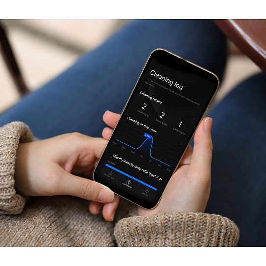 Mobilní aplikace sleduje výkon v reálném čase, nastaví upomínky a doporučení. Hlasový průvodce vás provede úklidem a pomůže využít všechny funkce naplno.