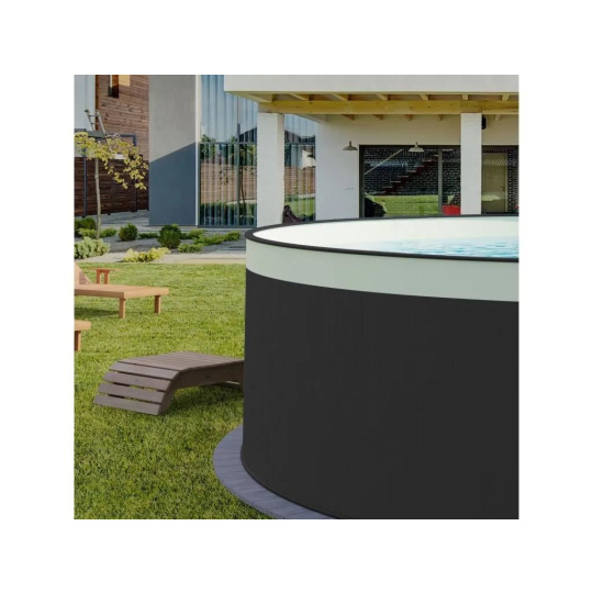 Nadzemní bazény Planet Pool s ocelovou stěnou jsou určeny pro celoroční použití. Odpadá tak potřeba bazén demontovat na podzim a znovu instalovat na jaře jako u sezónních bazénů s nafukovacím límcem či rámovou konstrukcí. Díky žárově pozinkované a nátěrem ošetřené ocelové stěně a mrazuvzdorné fólii je bazén připraven na všechny rozmary přírody. Tento bazén je velmi stabilní, pevný s dlouhou životností. Moderní ANTRACITOVÝ nátěr stěny bazénu + PÍSKOVÁ PVC závěsná folie. Bazén je vhodný pro instalaci na rovném podkladu s dostatečným odstupem od potenciálního spadu nečistot ze stromů a střech. UV stabilizace PVC folie zajišťuje je barevnou stálost a životnost. Tento bazén přestavuje osvědčenou koncepci bazénu a pozitivní historickou zkušenost. Bazén se instaluje pomocí spodních a horních lišt, do kterých se zasazuje ocelová stěna. Oba kraje stěny se propojí pomocí vnitřních a vnějších lišt a šroubů. Mrazuvzdorná folie se pomocí zalomení o horní část ocelové stěny zavěsí a vytvaruje do bazénu dle vizuálních požadavků. Folie je flexibilní a na míru vyrobena pro tento typ bazénu (není třeba žádných úprav). Pro montáž krok za krokem následujte pokyny v montážním návodu. Parametry: Tvar bazénu: kulatý tvar Rozměry bazénu: 350 x 90 cm Ocelová stěna: 0,3 mm UV stabilizovaná PVC fólie, tloušťka 0,2 mm, barva PÍSKOVÁ Barva bazénu: ANTRACITOVÁ Děrování pro standardní vestavěný skimmer a zpětnou trysku k dispozici Horní a podlahová lišta z plastu Bazén odpovídá evropské normě pro bazény EN 16562-2.