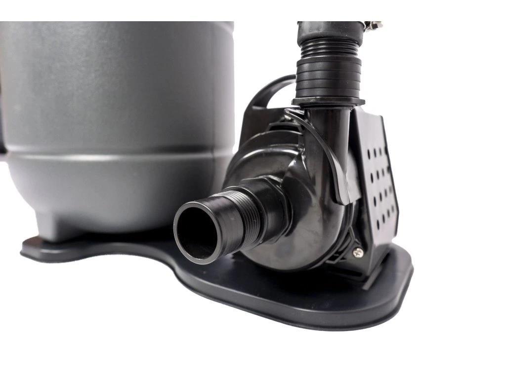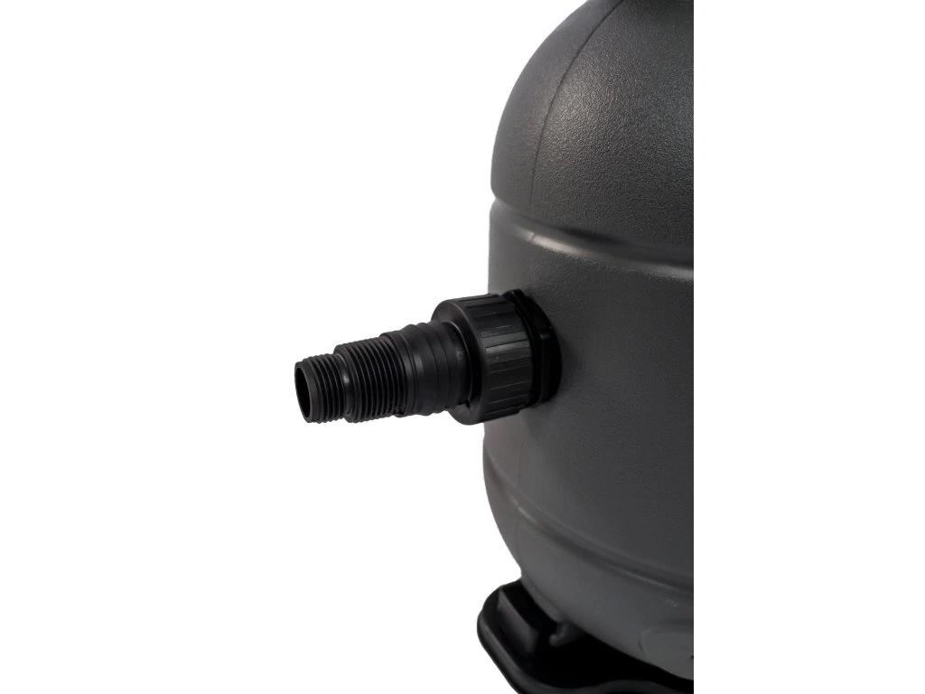 Filtrační nádoba je vyrobena z odolného polypropylenu, který nepodléhá korozi, odolává UV záření i běžné bazénové chemii. Stabilní základna s otočným zámkem zajišťuje bezpečné uchycení filtrační nádoby a dlouhou životnost celého systému.
