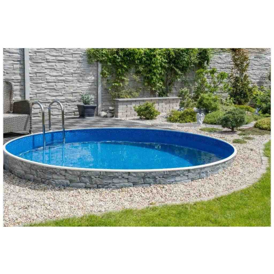 Bazénová fólie Waves pro bazény s plechovou stěnou o průměru 5,5 m a hloubce až 1,2 m. Fólie je vhodná jak pro nové bazény, tak i na výměnu do již postavených bazénů.