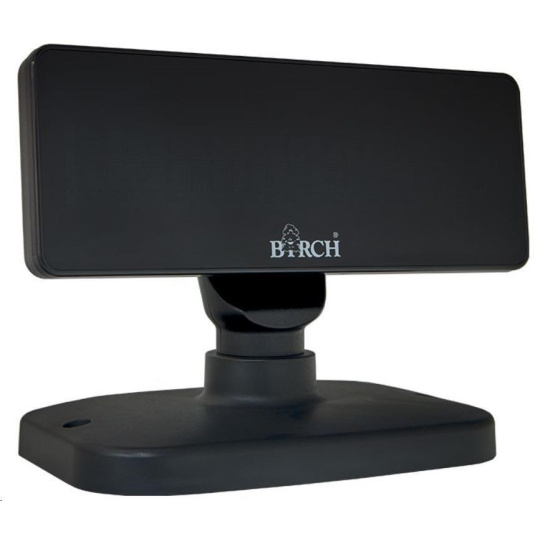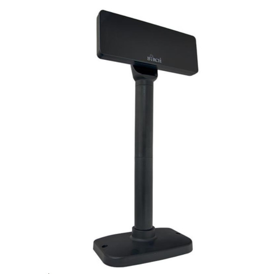 Birch DSP-V9 je zákaznický alfanumerický VFD displej k pokladním, poštovním a jiným přepážkám za bezkonkurenční cenu. Zobrazuje 40 znaků ve dvou řádcích velkým, vysoce svítivým písmem. Ovládání je prostřednictvím rozhraní USB nebo RS232 standardním příkazovým jazykem podle Vašeho výběru (LD220, DSP800, UTC/S, ESC/POS, AEDEX, CD5220 a další). Jeho hlavici lze horizontálně otočit až o 355°.