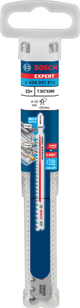Vydrží až 50× déle než pilový plátek Bosch T345XF - Někdy potřebujete plátek, na který se můžete spolehnout. Pilový plátek, který si poradí se stavebním dřevem, ve kterém je kov. Nebo s dřevovláknitými deskami. Nebo s tvrdými šrouby. Pilový plátek EXPERT Multi Material thick and thin T367XHM opravdu dokáže pracovat s různými materiály a řeže ještě dlouho poté, co jiné pilové plátky selžou. Extrémní odolnost plátku EXPERT Multi Material thick and thin T367XHM zajišťuje karbidové technologie Bosch Carbide Technology – pokročilá struktura zubů se vyrábí pokročilými postupy a obsahuje ten nejtvrdší kov. Navíc má plátek konstrukci zubů optimalizovanou pro sílu a rychlost. Progresivní rozteč zubů navíc řeže materiál všech tlouštěk agresivně, ale bez lámání. Pilový plátek Bosch EXPERT Multi Material thick and thin T367XHM dokáže řezat houževnaté dřevěné materiály s kovovými prvky i další odolné konstrukční materiály. Je to pilový plátek, na který je spolehnutí. Kompatibilní se všemi pilami s upínáním do T.