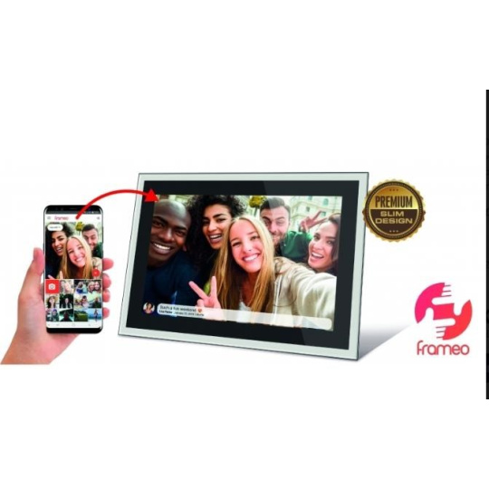 https://reflecta.de/ WiFi digitální fotorámeček s úhlopříčkou 10", rozlišení 1920x1200px, 16:10 IPS, přehrávání JPEG/MP3/Video, 16GB interní paněť, aplikace FRAMEO (Android/iOS, FREE) pro zasílání obrázků a videí z telefonu, G-senzor pro h/v pozici, micro SDHC slot, micro USB, černý. Slim design, WLAN modul 802.11 b/g/n, opěrka na stůl, jednoduchá obsluha a nastavení pomocí bezplatné aplikace FRAMEO, ideální pro aktualizaci obsahu a nastavení rámečku z telefonu doma i na cestách, možnost horizontálního i vertikálního provozu, vnitřní paměť pro až 999 obrázků, maximální doba pro video 15s, , micro SD karty do 32GB. Rozměry 400x250x25mm, hmotnost 1250g, síťový zdroj 5V/2A..