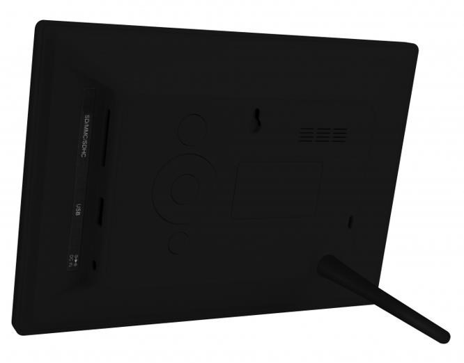 Digitální fotorámeček s úhlopříčkou 7", LED backlight, rozlišení 800x480px, 16:9, prohlížení obrázků ve formátu JPEG, slot SDHC a USB2 flash, OSD menu, bez dálkového ovladače, černý. Funkce: SlideShow (prezentace), náhledy, zoom a otáčení obrázků, budík, hodiny, kalendář. Rozměr: 204x143x26mm, hmotnost 680g/280g, Možnost uchycení na zeď nebo našrobování stojánku. Součástí dodávky síťový zdroj AC/DC 5V/1A..