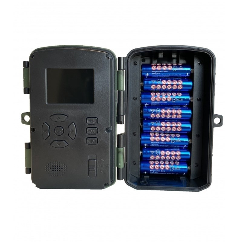 Fotopast s vysokým rozlišením CMOS 13MP a objektivem 90°. Záznam 1-3 foto až 48 MP nebo 3s-10min video až 4K/10fps, 3xPIR senzor 120°/ odezva 0,2s/ 40 Black IR LED do 20m, vnitřní 2" LCD, SD do 128GB, 4x nebo 8x AA baterie, rozměry 138x97x83mm, hmotnost 264g. Voděodolný přístroj dle IP66, barevné denní záběry a černobílé v noci, záznam datumu, času, teploty a fáze měsíce, PIR senzor má 3 citlivosti, interval mezi záběry 5s-60min, časosběrné záběry 3s-24h, stand-by 0,3mA až 6 měsíců, mikrofon, reproduktor. Slot SD, miniUSB, DC in 6V/2A pro externí zdroj, stativový závit, možnost uzamčení, design camouflage. V dodávce kabel USB, řemen a kovové uchycení s kulovou hlavou. BlackVision LED jsou vhodné i pro ostrahu proti zlodějům - nejsou vidět ani při přímém pohledu na fotopast při expozici..