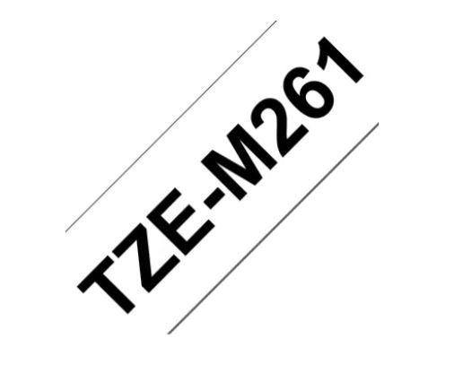 Brother TZe-M261 matná laminovaná páska – černý tisk na matném bílém podkladu, šířka 36 mm.