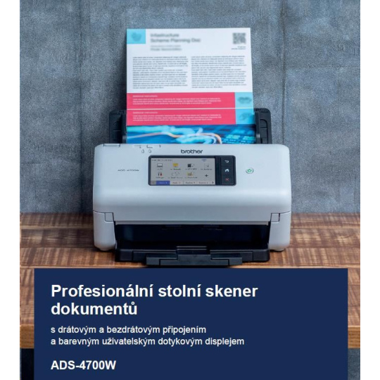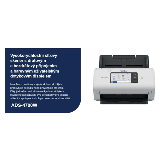 BROTHER skener ADS-4700W DUALSKEN A4 40pppm/80dual 600x600 60ADF USB LAN WIFI - display 10.5cm
