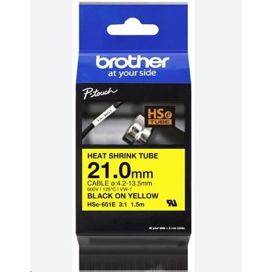 BROTHER smršťovací bužírka - HSE-651E žlutá pro H300 H500 E550 P700 P750 D800 P900 P950 - 21mm / 4,2-13,5mm / 3:1