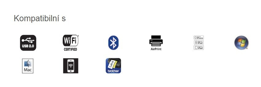AirPrint ano Bluetooth Ver 2.1 EDR MFi ano Profily bluetooth SPP/OPP/BIP/HCRP USB rozhraní Ver 2.0 (plná rychlost) Wi-Fi Direct Ano Rozhraní drátové sítě 10/100 BASE-TX Rozhraní bezdrátové sítě Wi-Fi IEEE 802.11 b/g/nRozměry a hmotnost
