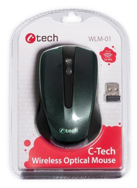 C-TECH myš WLM-01, černá, bezdrátová, USB nano receiver