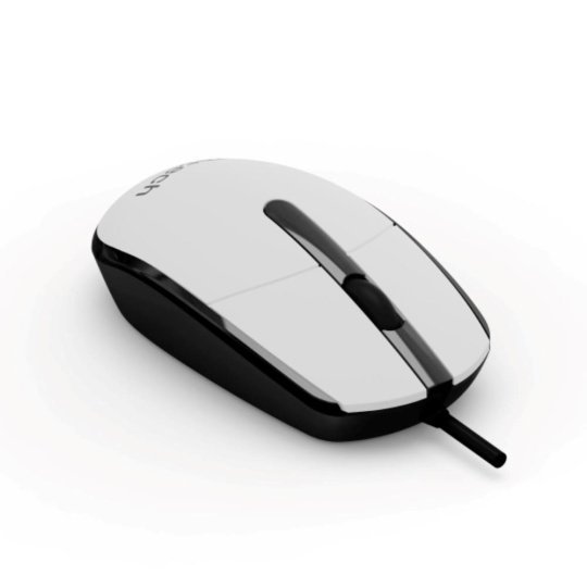 Myš je vybavena třemi tlačítky, což je standardní konfigurace, která zajišťuje rychlý přístup k základním funkcím, jako je levé a pravé kliknutí a střední tlačítko pro posouvání. Díky ergonomickému tvaru a kompaktním rozměrům (115 x 64 x 42 mm) se myš pohodlně drží v ruce i během dlouhého používání, což je ideální pro všechny, kdo tráví dlouhé hodiny u počítače. Připojení myši je realizováno pomocí klasického USB kabelu .