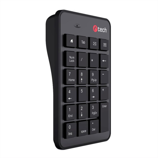 C-TECH Numerická kávesnice KBN-02WS, 23 kláves, Bezdrátová, Černá