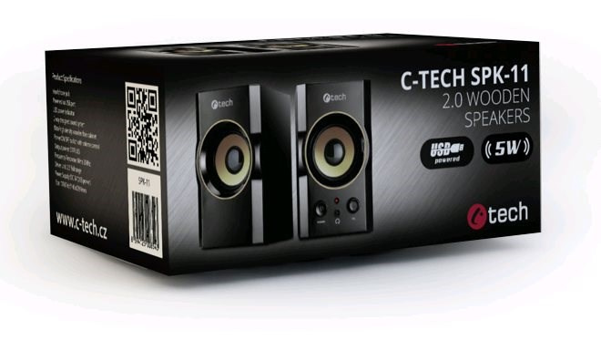 C-TECH repro SPK-11, 2.0, dřevěné, černo-zlaté, USB