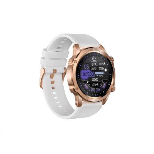 Moderní outdoorové fitness hodinky CARNEO ADVENTURE HR+ druhé generace v zlatorůžové barvě s bílým, na dotek velmi příjemným silikonovým řemínkem a barevným SUPER AMOLED displejem s vysokým jasem a funkcí trvalého zobrazení času monitorují vaši denní aktivitu, úroveň stresu, ale lze je spárovat s mobilním telefonem a upozornit vás na příchozí hovor nebo SMS. Hodinky umožňují telefonovat, aniž byste museli telefon vyndat z tašky, díky vestavěnému mikrofonu a reproduktoru až do vzdálenosti 10 m od telefonu. Jejich bezchybné kovové tělo s nadčasovými outdoorovými křivkami je tak návykové, že je po prvním nošení nebudete chtít sundat ze zápěstí. Extrémně odolné sklo Gorilla glass, ochrání jejich křišťálově čistý displej před poškrábáním.