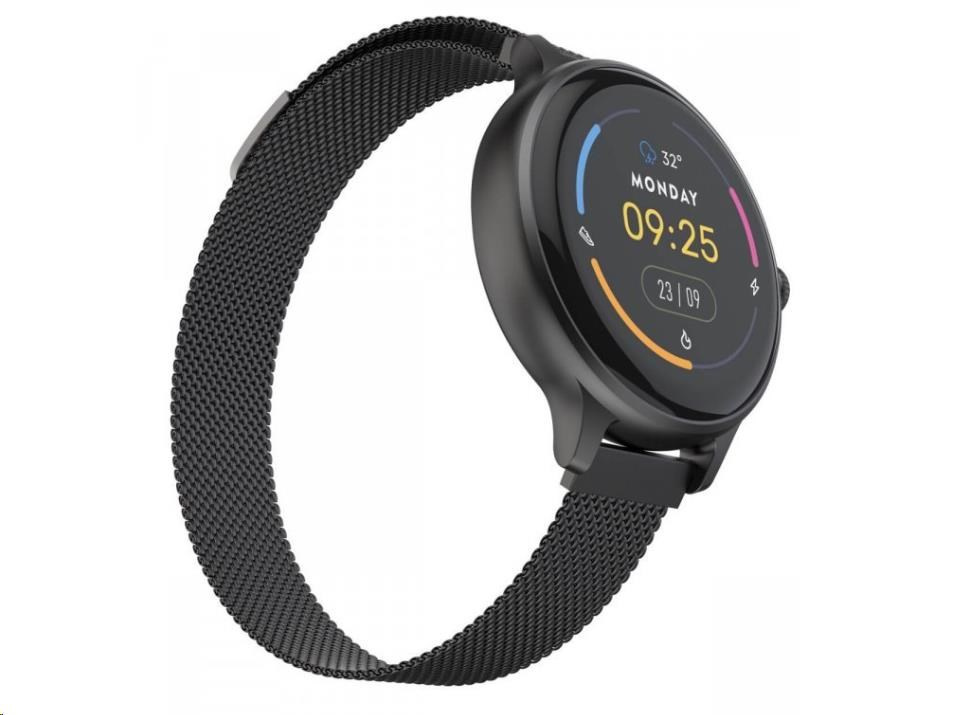 Luxusní fitness hodinky CARNEO HERO mini HR+ s Milánským, kovovým řemínkem s barevným Super HD AMOLED displejem. Monitorují vaši denní aktivitu, výšku stresu a lze je spárovat s mobilním telefonem, díky čemuž Vás upozorní na příchozí hovor či SMS. Jejich dokonalé, minimalistické kovové tělo s jednoduchými křivkami je tak návykové, že je nebudete chtít po prvním nošení sundat z ruky. Hodinky Vám umožňují vyřídit telefonický hovor přes zabudovaný mikrofon a reproduktor, pokud budete v dosahu spárovaného telefonu (vzdálenost až 10 metrů).