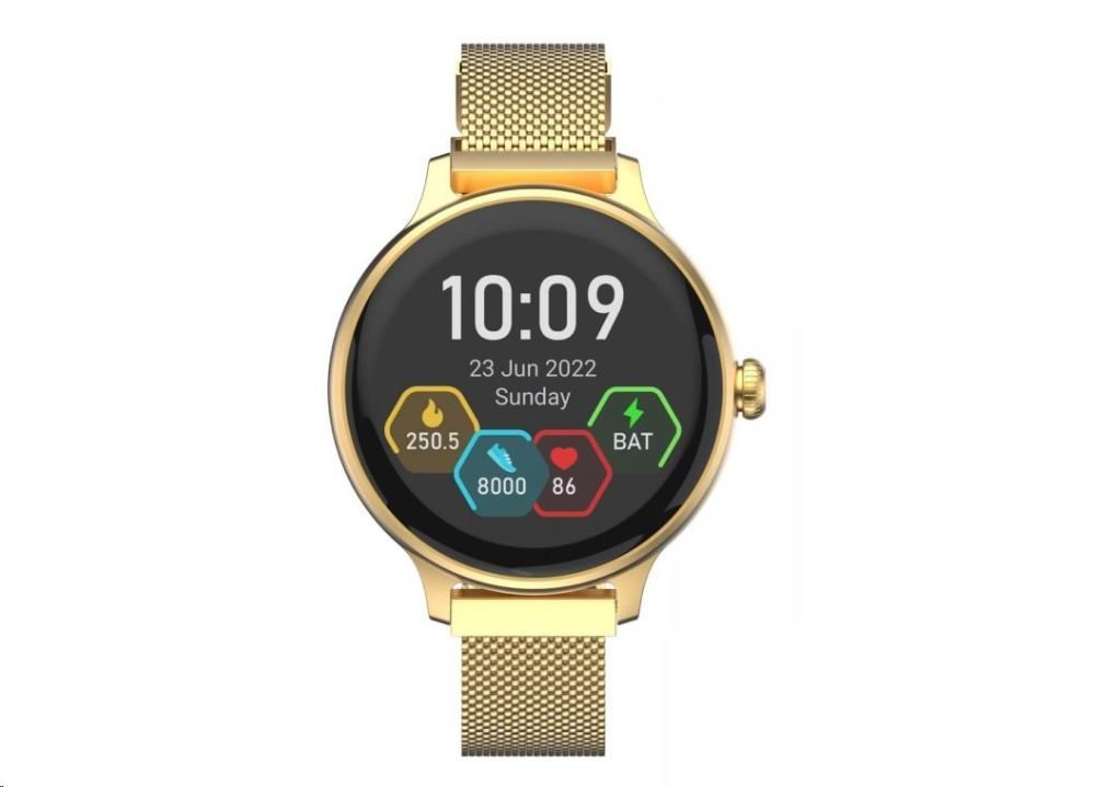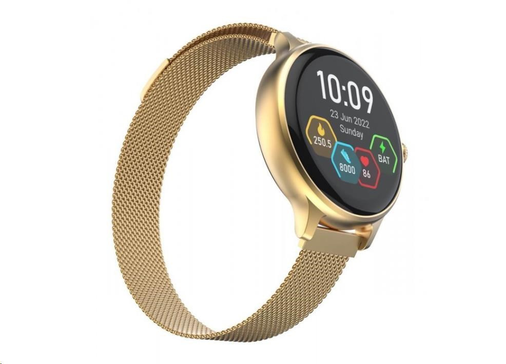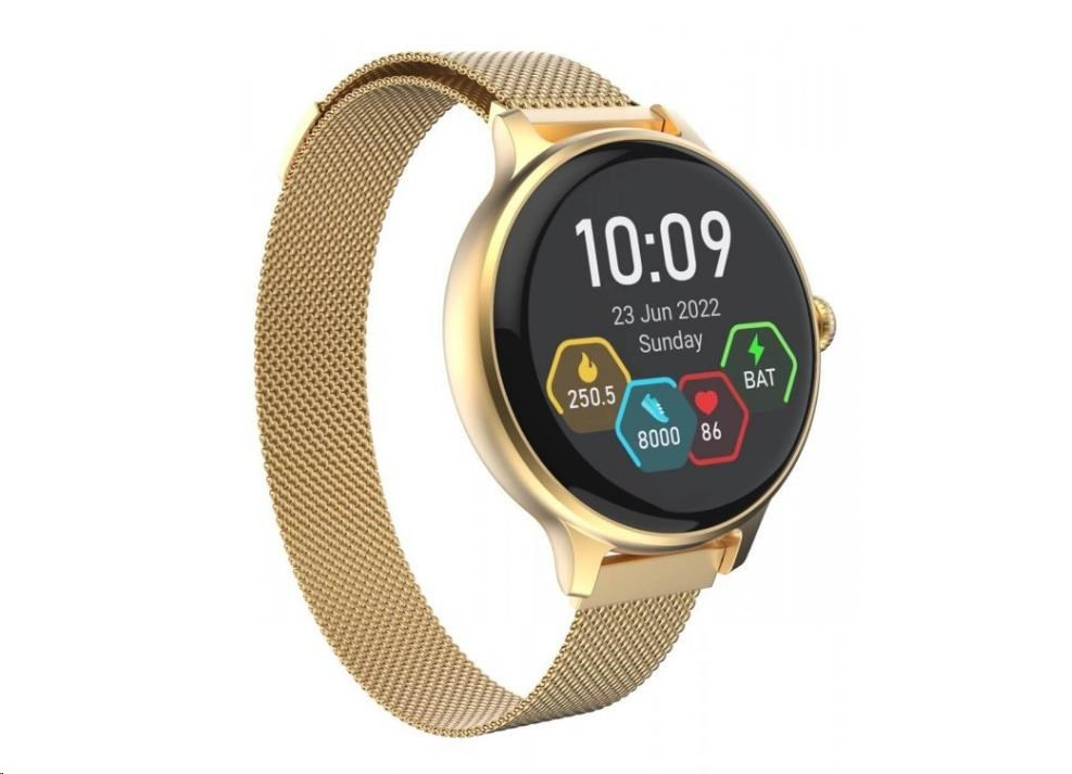 Luxusní fitness hodinky CARNEO HERO mini HR+ s Milánským, kovovým řemínkem s barevným Super HD AMOLED displejem. Monitorují vaši denní aktivitu, výšku stresu a lze je spárovat s mobilním telefonem, díky čemuž Vás upozorní na příchozí hovor či SMS. Jejich dokonalé, minimalistické kovové tělo s jednoduchými křivkami je tak návykové, že je nebudete chtít po prvním nošení sundat z ruky. Hodinky Vám umožňují vyřídit telefonický hovor přes zabudovaný mikrofon a reproduktor, pokud budete v dosahu spárovaného telefonu (vzdálenost až 10 metrů).