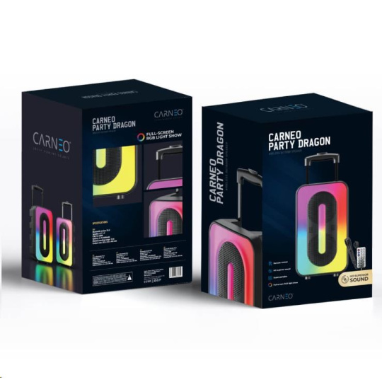 Maximální výkon P.M.P.O. 600 W jednoduše rozehraje i větší domácí party nebo živější venkovní posezení. Vylepšená kvalita zvuku a našlapaný výkon Vás vtáhnou do světa hudby, který nebude chtít opustit. S Carneo PartyDragon se můžete spolehnout, že vždy dodá hutný a čistý zvuk. Vysoce kvalitní reproduktory Vám doručí do uší nepřekonatelně kvalitní zvuk s vysokými výškami i basy.