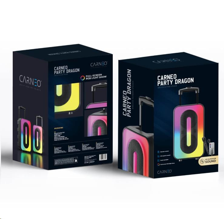 Maximální výkon P.M.P.O. 600 W jednoduše rozehraje i větší domácí party nebo živější venkovní posezení. Vylepšená kvalita zvuku a našlapaný výkon Vás vtáhnou do světa hudby, který nebude chtít opustit. S Carneo PartyDragon se můžete spolehnout, že vždy dodá hutný a čistý zvuk. Vysoce kvalitní reproduktory Vám doručí do uší nepřekonatelně kvalitní zvuk s vysokými výškami i basy.