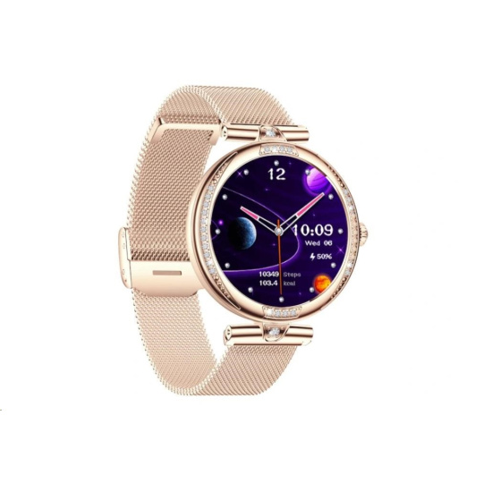 Luxusní dámské fitness hodinky CARNEO Seinna HR+ stříbrné jsou skutečný klenot na ruce každé ženy. Kovové tělo osazené broušenými kameny přitáhne pohledy všech. S barevným SUPER AMOLED displejem monitorují vaši denní aktivitu a lze je spárovat s mobilním telefonem, díky čemuž můžete vyřídit telefonický hovor přímo ze zápěstí, nebo vás upozorní na příchozí hovor, SMS nebo zprávu z aplikací.