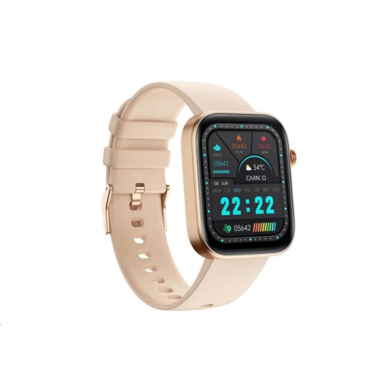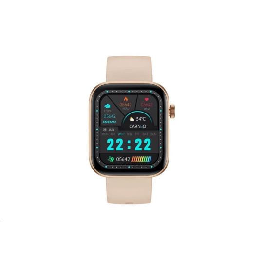 Moderní fitness hodinky Carneo Zenith HR+ v elegantní zlaté barvě jsou vybaveny barevným displejem IPS, který lze aktivovat pouhým otočením ruky. Měří tělesnou teplotu, krevní tlak, okysličení krve, srdeční tep, ušlou vzdálenost, monitorují spálené kalorie a kvalitu spánku. Jejich součástí je baterie s výdrží cca 2-4 dny. Podle certifikace IP67 jsou odolné vůči vodě a prachu. Hodinky s podporou technologie Bluetooth jsou kompatibilní s operačním systémem iOS a Android. Silikonový náramek s kovovou přezkou je příjemný na dotek a zaručuje komfort během celého dne.