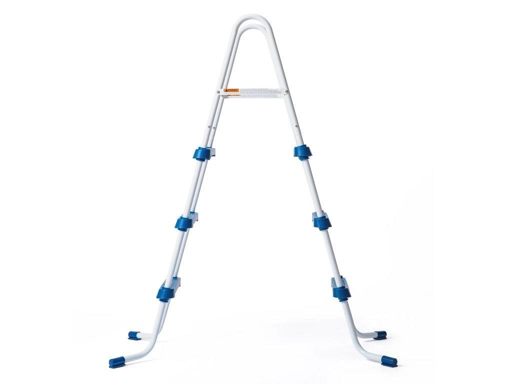 Bazénové schůdky 91 cm pro nadzemní bazény mají kovový rám a plastové stupně s bezpečnostním protiskluzným povrchem. Vysokou nosností až 150 kg. Jsou vyrobeny z vysoce kvalitních ocelových trubek s lakovanou povrchovou úpravou, vyznačují se proto velmi dlouhou životností. Díky lehké konstrukci pohodlně vložíte či vyjmete z bazénu.