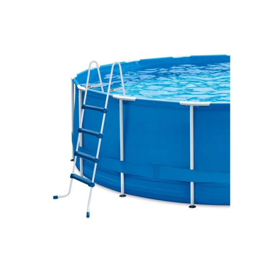 Bazénové schůdky 122 cm pro nadzemní bazény mají kovový rám a plastové stupně s bezpečnostním protiskluzným povrchem. Vysokou nosností až 150 kg. Jsou vyrobeny z vysoce kvalitních ocelových trubek s lakovanou povrchovou úpravou, vyznačují se proto velmi dlouhou životností. Díky lehké konstrukci pohodlně vložíte či vyjmete z bazénu.