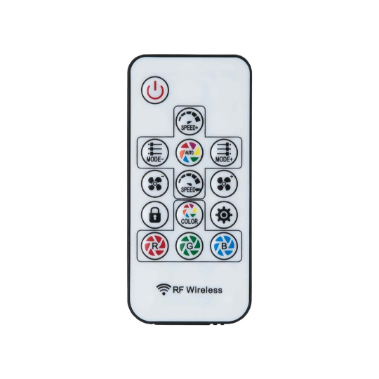 The new CF-3012-RGB 3-RGB fan set (Tornado) with a multi-functional control board and an RF remote control easily fulfills and surpasses all lighting expectations of a gamer. Thanks to the included multi-functional controller board, the RGB lighting can be controlled either via mainboard +5V LED header or completely independently, without motherboard by switching with corresponding + 5V LED headers. Each fan is equipped with 16 addressable LEDs and allows an almost infinite RGB effect variety which cannot be realised by a simple and conventional +12V RGB lighting. In addition, each fan is furnished with shock-absorbing and anti-vibration rubbers and designed with special shaped fan blades which guarantee a whisper quiet operation. The white fan blades ensure a uniform illumination. All conventional +5V addressable RGB motherboard technologies such as ASUSTM AURA, ASRockTM RGB Sync, MSITM Mystic Light Sync and GigabyteTM RGB FUSION are supported. The multifunctional hub can be connected to a +5V adressable RGB header. It offers 6x 6PIN fan connectors and 2x 3PIN +5V RGB connectors for other peripherals like LED strips or similar. The color modes and fan speed can also be controlled directly via the function buttons on the controller board which is of course compatible with all CHIEFTEC RGB fans.