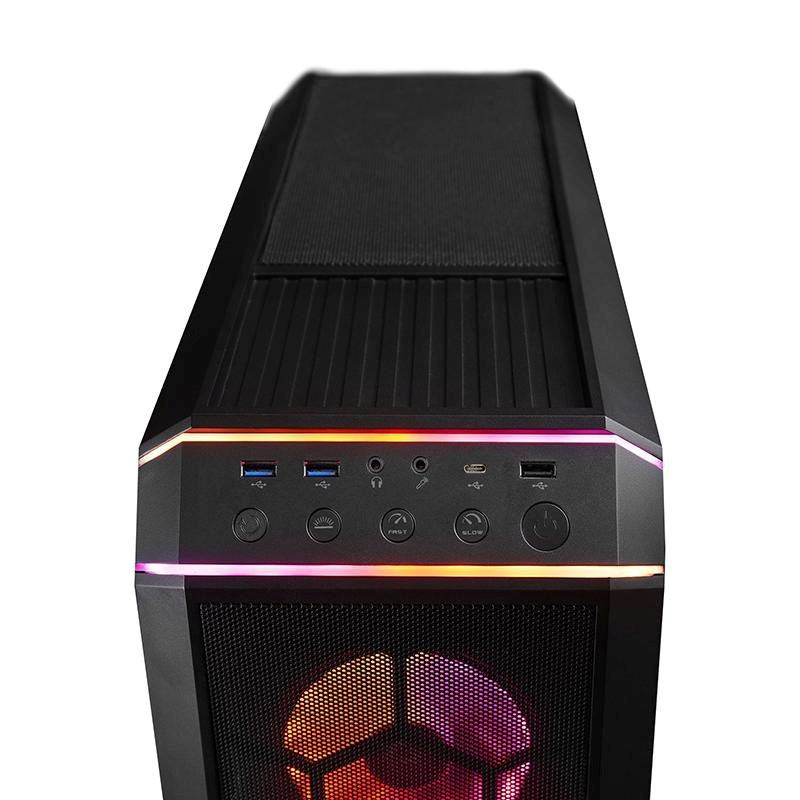 4 předinstalované 120mm ventilátory RGB RAINBOW RING jsou ovládány jednotkou dálkového ovládání, která je součástí rozsáhlého „rozsahu dodávky“. Propracovaný design interiéru umožňuje integraci přídavného 360mm chladiče vodního chlazení do přední části, a tak tato druhá generace herní skříně Chieftec splňuje a překonává očekávání každého hráče.