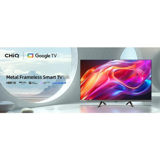 CHiQ 32“ L32M9E, metalická bezrámečková Smart Google TV s HDR10, HLG, obrazovkou s HD s rozlišením, Dolby Audio a vylepšeným zvukem dbx-tv.
