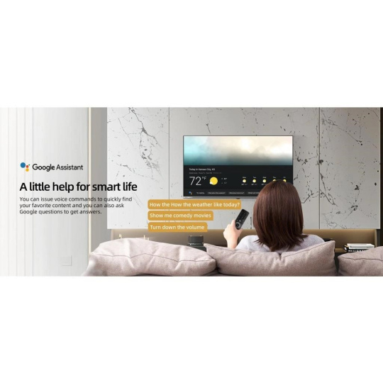 Použijte dálkové ovládání a hledejte obsah, který vás zajímá, jednoduše hlasem. Google Asistent Vám pomůže zkontrolovat počasí, vyhledat filmy nebo televizní programy. Stačí se jen zeptat. Získáte rychlý přístup k zábavě, odpoví na vaše otázky. Pomocí hlasu můžete ovládat další chytrá zařízení v domácnosti. Stačí stisknout tlačítko "Google Assistant" na vašem dálkovém ovladači a sdělit váš pokyn.